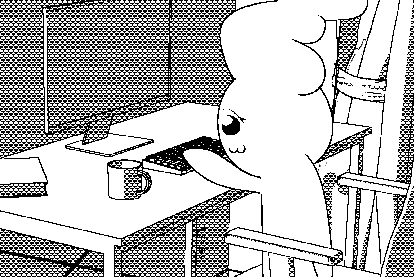 Me on my puter using my websites. (That's a lie that's Nyarlathotep and that's not my computer I got it from CLIP STUDIO ASSETS, which is also a useful website when you have CSP).