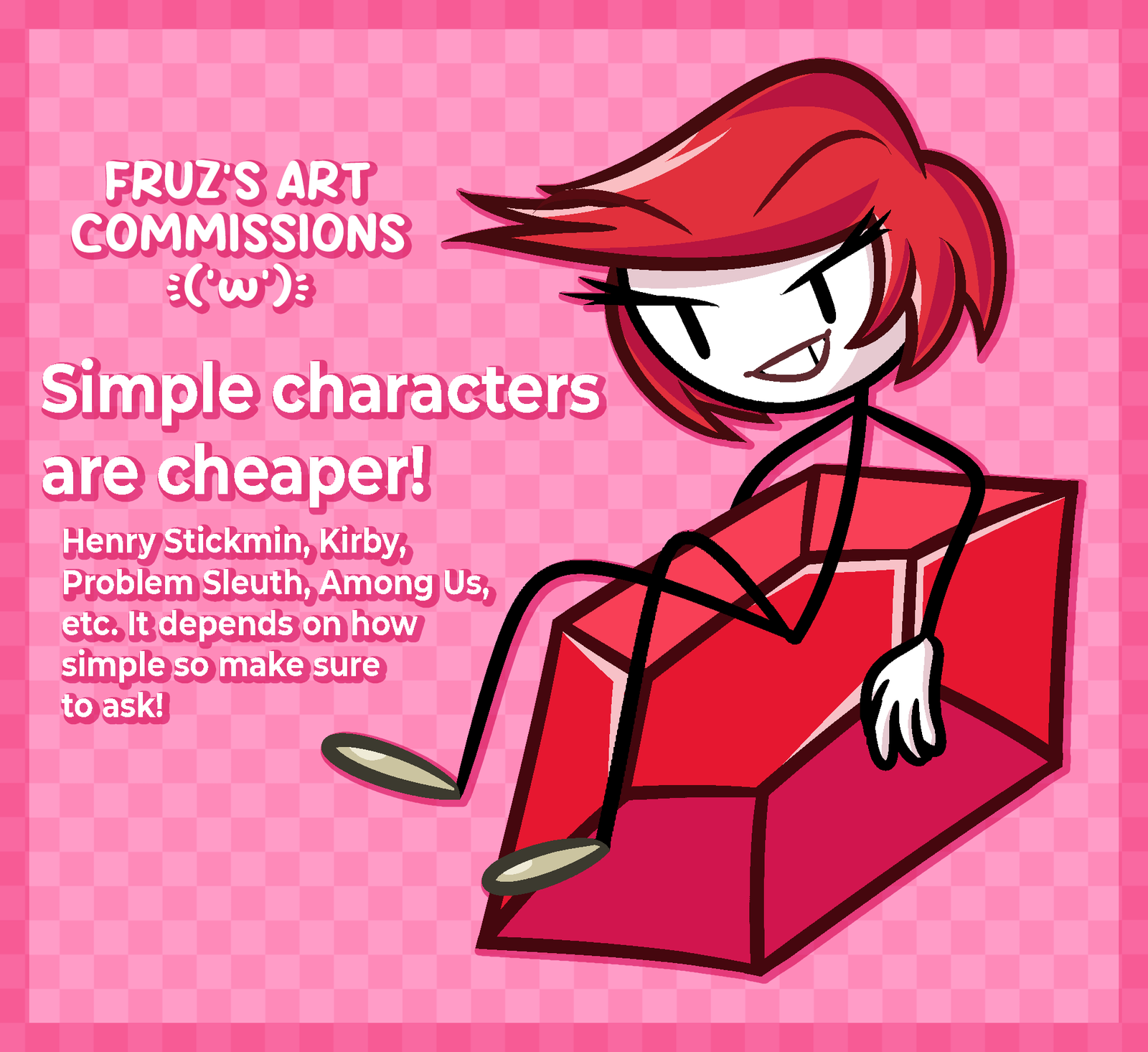As an example and point of reference Henry Stickmin, Kirby, Problem Sleuth, and Among Us are all considered simple characters